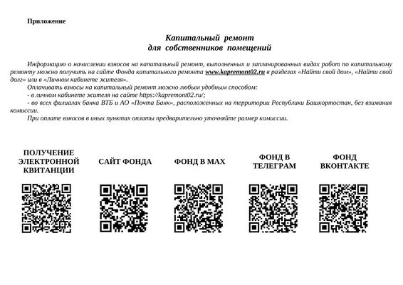 Информацию о начислении взносов на капитальный ремонт, выполненных и запланированных видах работ по капитальному ремонту можно получить на сайте Фонда капитального ремонта www.kapremont02.ru в разделах «Найти свой дом», «Найти свой долг» или в «Личном кабинете жителя».